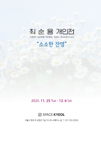 순 용 최 개인전 최 순 용 개인전 CHOI SOON YONG S olo Exhibition “소소한 잔영” 2025. 11. 25 Tue - 12. 6 Sat 서울시 종로구 삼청로 7길 19-30 스페이스 결 T. 02-720-2838