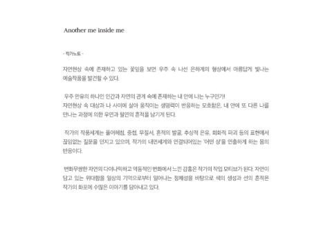 자연현상 속 대상과 나 사이에 살아 움직이는 생명력이 반응하는 모호함은, 내 안에 또 다른 나를