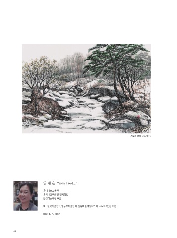 겨울의 향기 43x61cm 염 태 은 Yeom, Tae-Eun 홍대미술교육원 홍익대교육원전, 월목회전 안견미술대전 특선 現 : 한국미술협회, 영등포미술협회, 전통미술여성작가회, 수묵화6인전 회원 010-4775-1037 44
