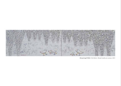Dreaming215022 40x160cm Mixed media on canvas 2021