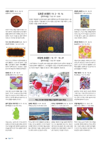 충주 엽연초 이야기전 | 9. 11 – 12. 14 임혜란 개인전 | 9. 29 – 10. 25 이두선 고양아트페어 | 10. 16 – 10. 19 조엘 메슬러전 | 9. 2 – 26. 2. 22