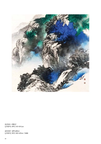 요산요수 – 대둔산 한지에 먹, 채색 | 141×141cm 금수강산 – 공주 금강교 한지에 먹, 채색 | 182×97cm | 1988 41