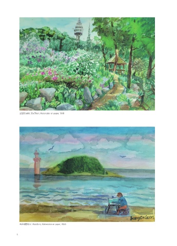 오월의 공원, 56x78cm, Watercolor on paper, 1998 속초해변에서 35x50cm, Watercolor on paper, 2025 4