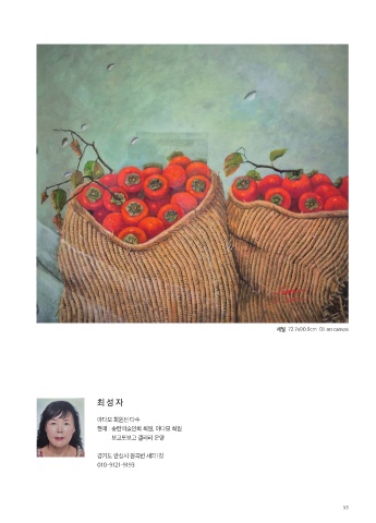 세월 72.7x90.9cm Oil on canvas 최 성 자 아다모 회원전 다수 현재 : 송탄미술인회 회원, 아다모 회원 보고또보고 갤러리 운영 경기도 안성시 원곡변 새터1길 010-9121-9193 53