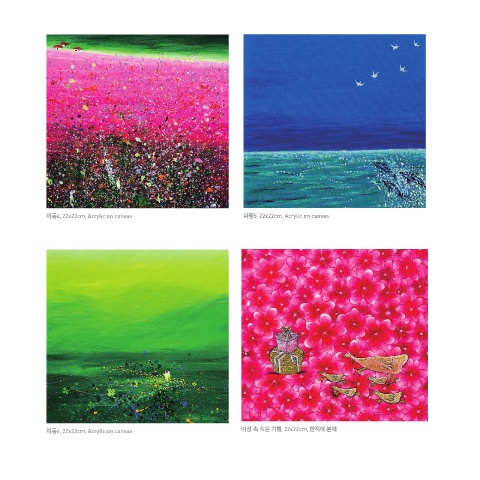 파동4, 22x22cm, Acrylic on canvas 파동5, 22x22cm, Acrylic on canvas 파동6, 22x22cm, Acrylic on canvas 여정 속 작은 기쁨, 22x22cm, 한지에 분채