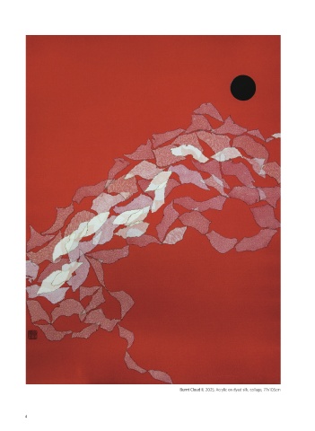Burnt Cloud II, 2025, Acrylic on dyed silk, collage, 77x105cm 4