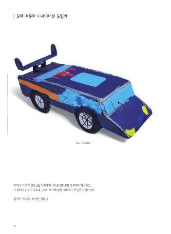 꼬마 자동차 디자이너의 드림카 44x17x21cm 우리 세 가족과 선생님들과 함께한 색다른 경험으로 창의력이 자극되고, 다 함께 맛있는 도시락과 간식도 먹으며 정말 의미 있고 뜻깊은 시간이었다. 참가자 : 박시윤, 박상훈, 김빛나 12