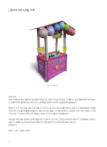 나누며 모두 한 마음으로 즐겁게 만들다보니 완성! 지나가는 분들도 너무 좋아해 주시고 직접 만든 아이스크림 가게에 서서 진짜