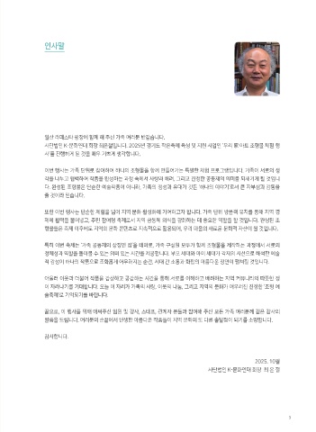 끝으로, 이 행사를 위해 애써주신 임원 및 강사, 스태프, 관계자 분들과 참여해 주신 모든 가족 여러분께 깊은 감사의