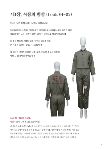 동질화와 복종을 드러낸다. 어깨와 가슴을 강조한 구조는 '충성'이라는 이름 아래 희생당한