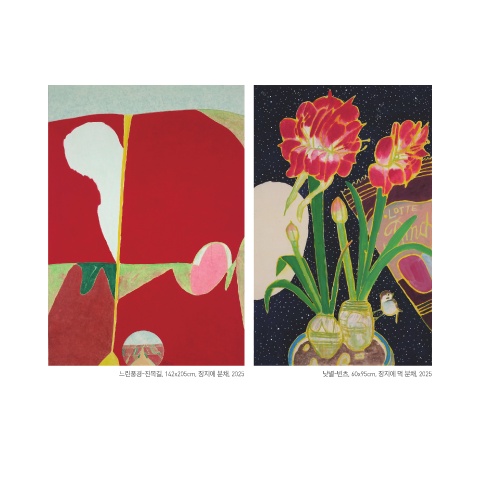느린풍경-진목길, 142x205cm, 장지에 분채, 2025 낮별-빈츠, 60x95cm, 장지에 먹 분채, 2025