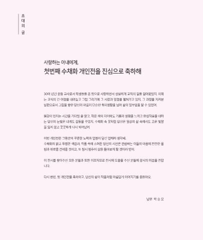 다시 한번, 첫 개인전을 축하하고, 당신의 삶이 작품처럼 아름답게 이어지기를 응원하오.