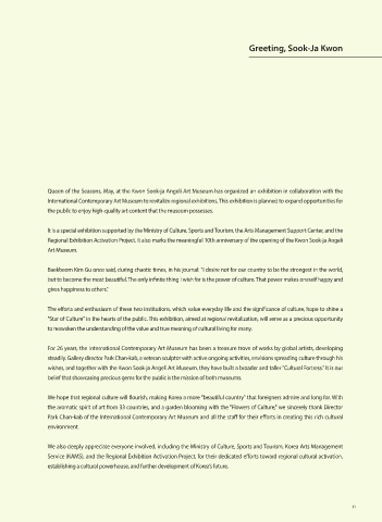 Regional Exhibition Activation Project. It also marks the meaningful 10th anniversary of the opening of the Kwon Sook-ja Angeli