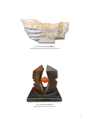 Julio Cesar Londono(Colombia 콜롬비아) 사막의 제조자(HACEDOR DE DESIERTOS), 대리석, 45*25*20, 2001 Silvia Salgado(Colombia 콜롬비아) 빛의 집(House of Light), Bronze, 25*20*55, 2017 33