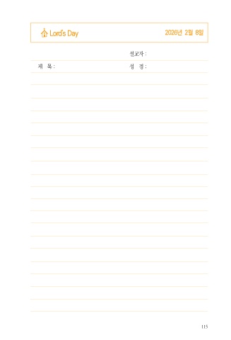 Lord's Day 2026년 2월 8일 설교자 : 제 목 : 성 경 : 115
