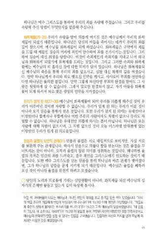 화목제물(25-26) 우리가 속량을 받아 의롭게 여겨진 것은 예수님께서 우리의 화목