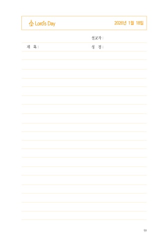 Lord's Day 2026년 1월 18일 설교자 : 제 목 : 성 경 : 59