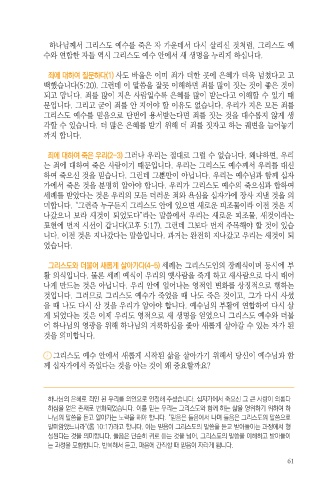 하심을 얻은 존재로 변화되었습니다. 이를 믿는 우리는 그리스도와 함께 하는 삶을 영위하기 위하여 하
