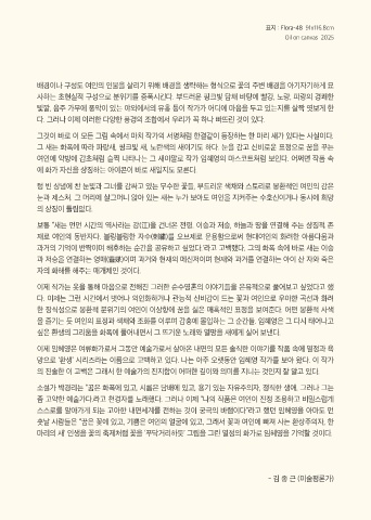 싶은 환생의 그리움을 화폭에 풀어내면서 그 뜨거운 노래와 열망을 새에게 실어 보낸다.