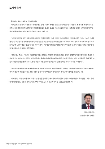 들이 예술의 감동을 함께 나누고, 충청 예술이 가진 깊이와 품격을 다시금 발견하는 계기가 되기를 기대합니다.