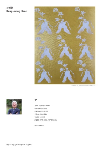 강정헌 Kang Jeong Heon 금산2025-9B, 2025, 혼합재료, 72.7 X 90.9 cm 경력 개인전 7회. 단체전 400여회 한국미술대전 심사위원 한국미술대전 운영위원장 한국미술혐회 부이사장 한국예총 자문위원 2023 한국미술 고오상. 대전미술 공로상 현)금산문화원장 충청의 어울림전 - 조형언어로 말하다