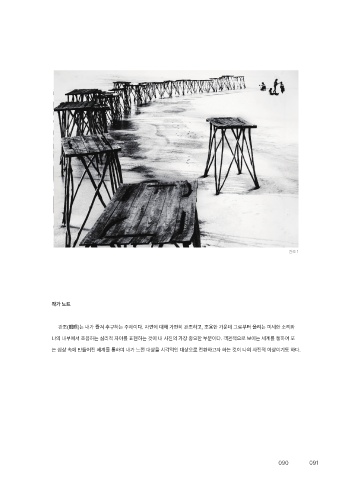관조 1 작가 노트 관조(觀照)는 내가 즐겨 추구하는 주제이다. 자연에 대해 가만히 관조하고, 조용한 가운데 그로부터 울리는 미세한 소리와 나의 내부에서 호응하는 심리적 자아를 표현하는 것이 내 사진의 가장 중요한 부분이다. 객관적으로 보이는 세계를 통하여 또 는 심상 속에 만들어진 세계를 통하여 내가 느낀 대상을 시각적인 대상으로 전환하고자 하는 것이 나의 사진적 이상이기도 하다. 090 091