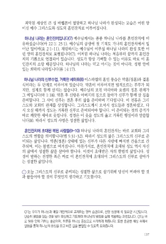 스도의 연합을 의미합니다(엡 5:31-32). 따라서 성도의 삶은 그리스도의 신부로 준