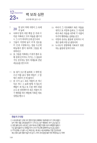 7 천 년이 차매 사탄이 그 옥에 13 바다가 그 가운데에서 죽은 자들을