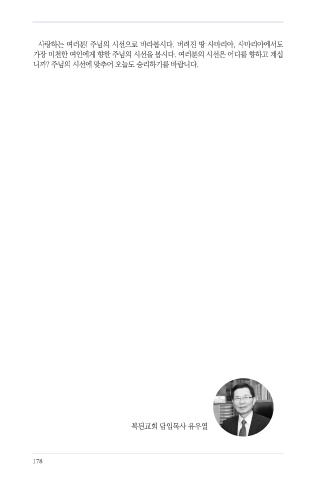 사랑하는 여러분! 주님의 시선으로 바라봅시다. 버려진 땅 사마리아, 사마리아에서도 가장 미천한 여인에게 향한 주님의 시선을 봅시다. 여러분의 시선은 어디를 향하고 계십 니까? 주님의 시선에 맞추어 오늘도 승리하기를 바랍니다. 복된교회 담임목사 유우열 178