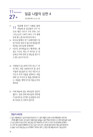 ③ 나의 가는 길 멀고 험하며 산은 높고 골은 깊어 곤한 나의 몸 쉴곳 없어도 복된 날이 밝아오리