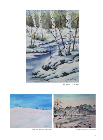 설경 45x60cm Oil on canvas 눈덮힌 언덕 30x25cm Oil on canvas 설촌 마실 50x40cm Oil on canvas 25