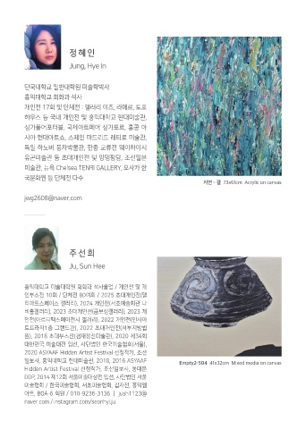 인부스전 10회 / 단체전 80여회 / 2025 초대개인전(델