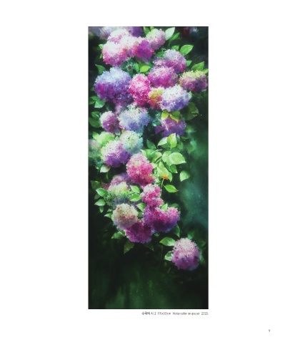 수국의 시 2 116x50cm Watercolor on paper 2025 9