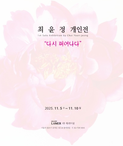 최 윤 정 개인전 1st S olo Exhibition by Choi Yoon-jeong “다시 피어나다” 2025. 11. 5 ~ 11. 10 월 수 1층 제2전시실 서울시 종로구 인사동 5길 26 홍익빌딩 T. 02-730 5454