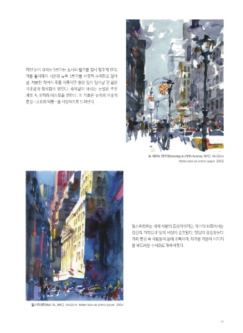 겨울 홀리데이 시즌의 뉴욕 5번가를 서정적 수채화로 담아