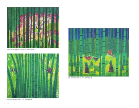 대나무와 백일홍 90.9x72.7cm 장지에 분채 대나무와 꿩 90.9x72.7cm 장지에 분채 대나무와 참새 90.9x72.7cm 장지에 분채 34