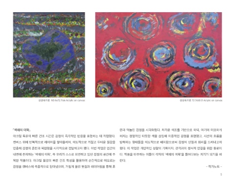 감정을 캔버스에 즉흥적으로 담아냈으며, 거칠게 올린 붓질과 레이어링을 통해 혼 - 작가노트 -