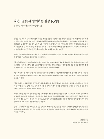 자연의 미는 유한성의 미로 구성되어 있다. “한산 김덕기”는 수많은 장소를 답사하고 체험하면서 눈으로 바라본 산하