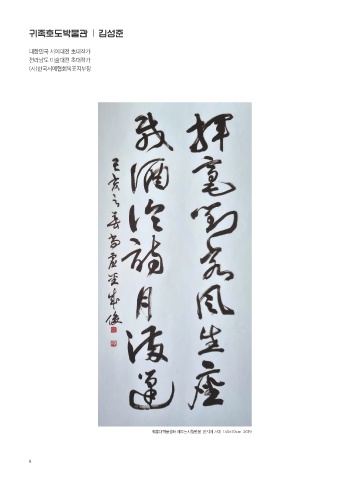 귀족호도박물관 ㅣ 김성준 대한민국 서예대전 초대작가 전라남도 미술대전 초대작가 (사)한국서예협회목포지부장 휘호대객풍성좌 재주논시월만봉 한지에 서예 140x70cm 2019 8