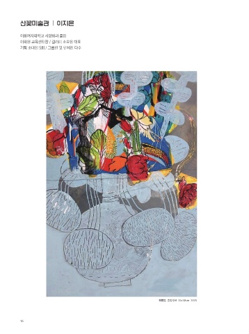 산꽃미술관 ㅣ 이지은 이화여자대학교 서양화과 졸업 이화원 교육센터장 / 갤러리 소요유 대표 기획 초대전 5회 / 그룹전 및 단체전 다수 화평도 혼합재료 55x38cm 2025 16