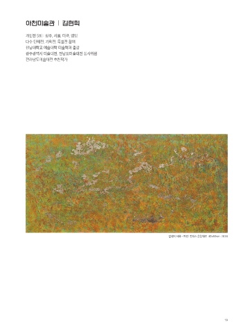 아천미술관 ㅣ 김현희 개인전 5회 : 광주, 서울, 미국, 영암 다수 단체전, 기획전, 특별전 참여 전남대학교 예술대학 미술학과 출강 광주광역시 미술대전, 전남도미술대전 심사위원 전라남도미술대전 추천작가 감각의 사유 - 자연 캔퍼스 혼합재료 40x80cm 2024 19