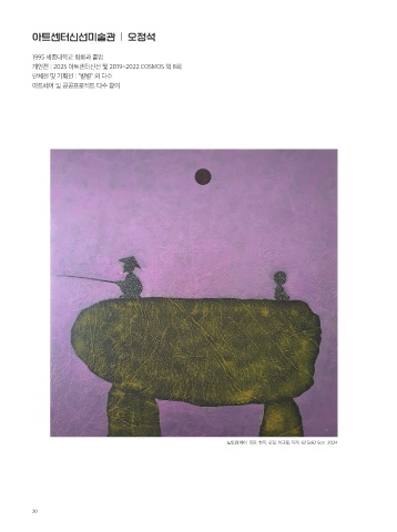 아트센터신선미술관 ㅣ 오정석 1995 세종대학교 회화과 졸업 개인전 : 2025 아트센터신선 및 2019~2022 COSMOS 외 8회 단체전 및 기획전 : “별별” 외 다수 아트페어 및 공공프로젝트 다수 참여 노인과 아이 목판, 한지, 오일, 아크릴, 자개 62.5x62.5cm 2024 20