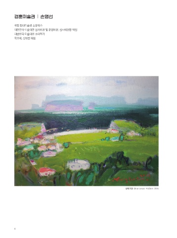 경훈미술관 ㅣ 손영선 국립 현대미술관 소장작가 대한민국 미술대전 심사위원 및 운영위원, 심사위원장 역임 대한민국 미술대전 초대작가 목우회, 신작전 회원 남해 전경 Oil on canvas 41x53cm 2016 6