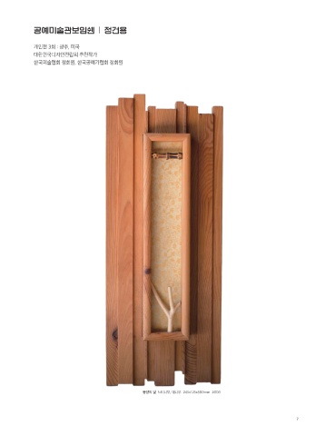 공예미술관보임쉔 ㅣ 정건용 개인전 3회 : 광주, 미국 대한민국디자인전람회 추천작가 한국미술협회 정회원, 한국공예가협회 정회원 동양의 빛 느티나무, 대나무 245x125x580mm 2003 7