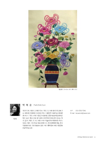 오 서화대전 민화부문 심사위원 역임 / 대한민국 서울미술시화대전                  E-mail : bsusanna1@naver.com