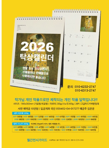 작가님 개인 작품으로만 제작되는 개인 작품 달력입니다!!