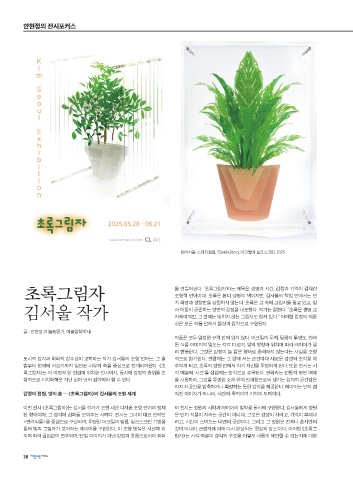 발부터 현재에 이르기까지 일관된 사유의 축을 중심으로 전개되어왔다. 《초 주하게 되고, 초록의 정원 안에서 자기 자신을 투영하게 된다. 또한 전시는 시