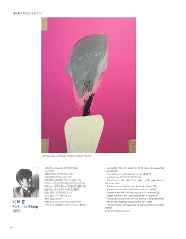 Park, Tae-Hong •현재. 창작미술협회회원, 대한민국미술대전 초대작가 •Present. Member of Chang-jark Fine Art Association, Invitational