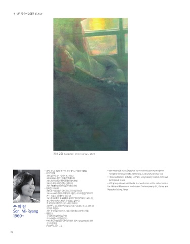 • 홍익대학교 서양화과 석사, 동아대학교 서양화과 졸업, • Son Miryang (b. Korea) received her MFA in Western Painting from
