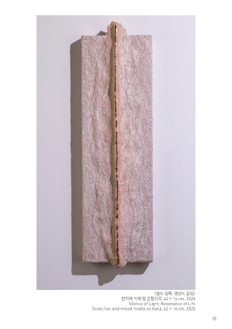 〈빛의 침묵, 생명의 울림〉 한지에 석채 및 혼합재료, 42 × 14 cm, 2025 Silence of Light, Resonance of Life Seokchae and mixed media on hanji, 42 × 14 cm, 2025 15